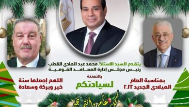 يتقدم محمد عبد الهادى القطب رئيس مجلس إدارة المعاهد القومية بخالص التهانى للأخوة المسيحين بمناسبة عيد الميلاد المجيد راجين من…