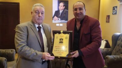 تكريم مدير مدرسة قومية الاهرام لحصول المدرسة على المركز الاول فى مجال التربية الفنية