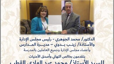هنئ السيد الأستاذ/ محمد عبد الهادى القطب رئيس مجلس إدارة المعاهد القومية مدارس الحرية للغات بالدقي بقيادة الأستاذة/ دينا جعفر…