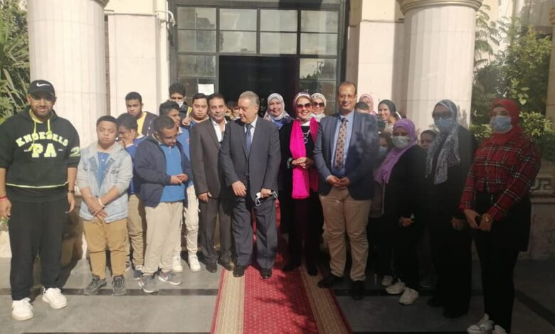 لقاء محمد عبد الهادى القطب رئيس مجلس إدارة المعاهد القومية مع أجمل طلاب ( طلاب التربية الفكرية ) بمدارس النصر بمصر الجديدة والأحتفال بيوم ذوى الإعاقة