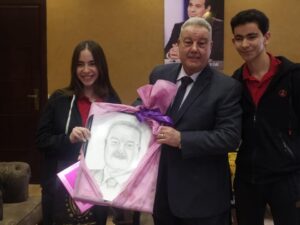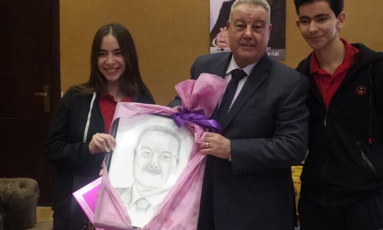كرم اليوم محمد عبد الهادى القطب رئيس مجلس إدارة المعاهد القومية الطالبة /منة الله أشرف بمدرسة القناة بالمعادي لحصولها على المركز الأول على مستوى إدارة المعادى في الشهادة الإعدادي