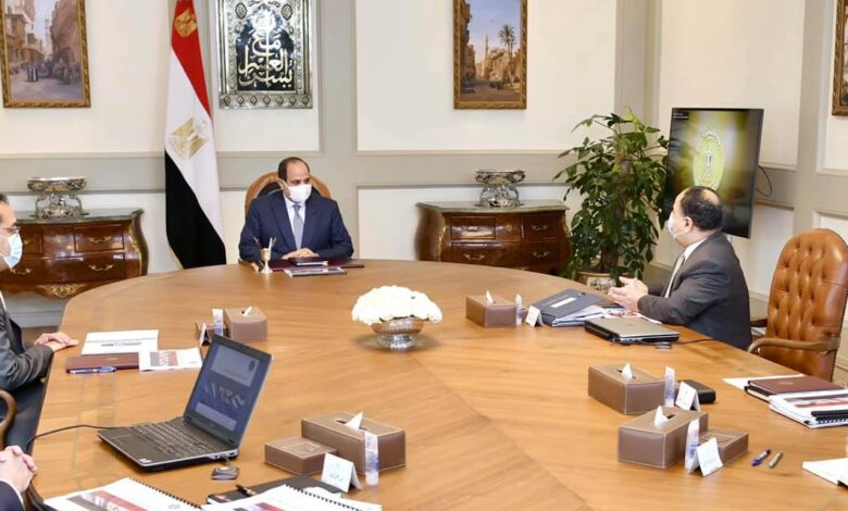 واجتمع السيد الرئيس مع الدكتور مصطفى مدبولي رئيس مجلس الوزراء، والسيد الدكتور محمد معيط وزير المالية، بحضور السيد أحمد كجوك نائب وزير المالية للسياسات المالية، والسيد الدكتور إيهاب أبو عيش نائب وزير المالية للخزانة العامة”.