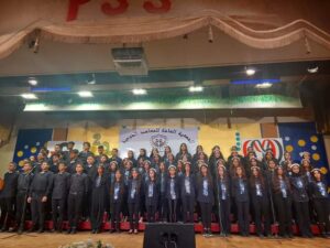 وقبل بداية الندوة تم عرض فقرة غنائية كورال مدرسة العجوزة القومية