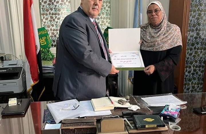 قام سيادته بتقديم شهادة تقدير شكرا وتقديرا لمجهوداتها