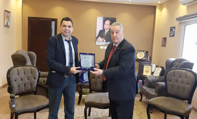 تكريم مدير مدرسة قومية الاهرام لحصول المدرسة على المركز الاول فى مجال التربية الفنية