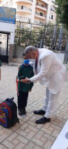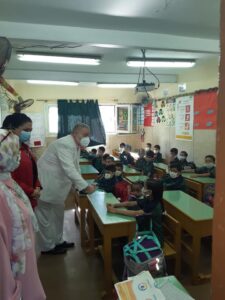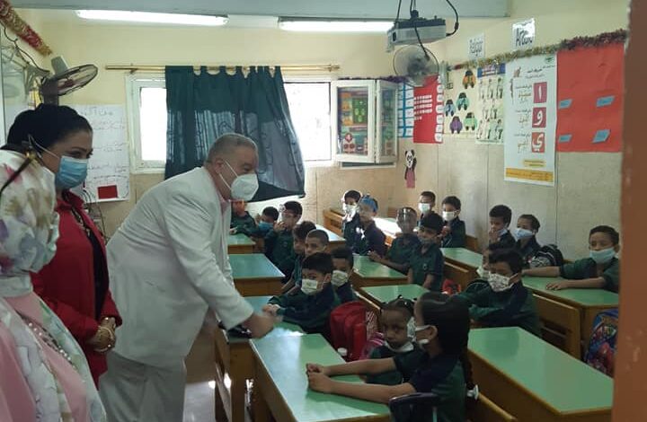 وقد حضر سيادته طابور الصباح والتأكد من اتباع الاجراءات الاحترازية لفيروس كرونا كما قام بالمرور على فصول المدرسة لتفقد العملية التعليمية
