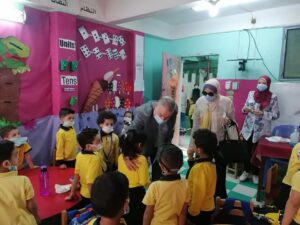 وقد تفقد سيادته المدرسة والتأكد من اتباع الاجراءات الاحترازية لفيروس كرونا كما قام بالمرور على فصول المدرسة لتفقد العملية التعليمية