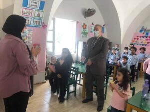 وقد تفقد سيادته المدرسة والتأكد من اتباع الاجراءات الاحترازية لفيروس كرونا كما قام بالمرور على فصول المدرسة لتفقد العملية التعليمية